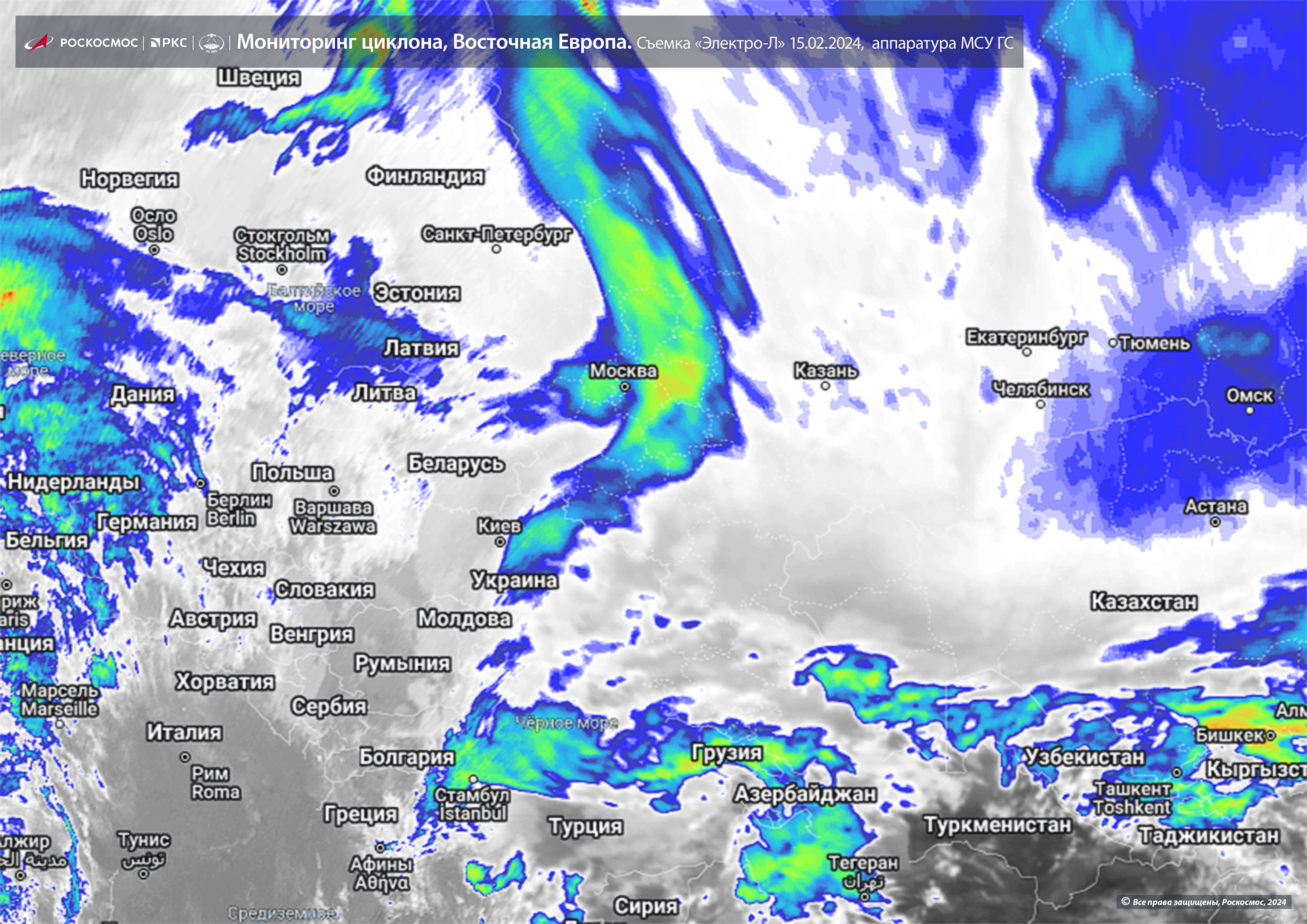 Россия впервые в своей истории развернула на геостационарной орбите полную группировку гидрометеорологических спутников