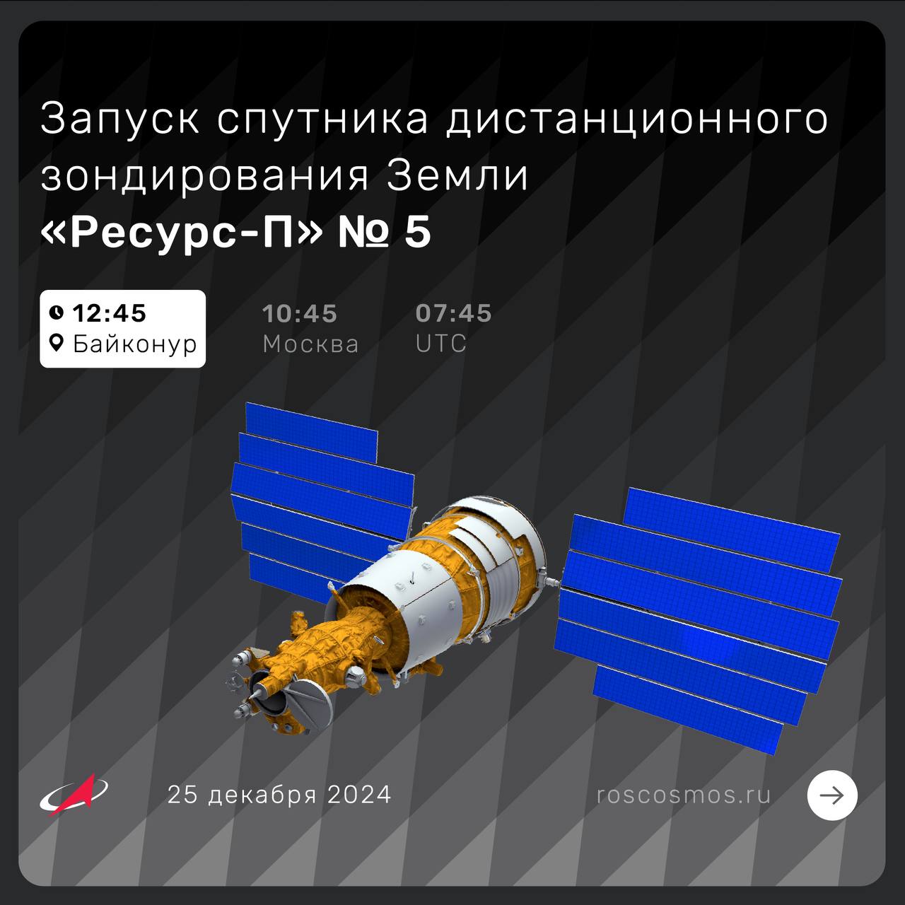25 декабря в 10:45 с Байконура взлетел «Союз-2.1б» с космическим аппаратом дистанционного зондирования Земли «Ресурс-П» № 5.